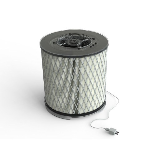 空气通过侧面的过滤网进入立方体中,过滤后的气体随着顶部的风扇排出,流量大、流动性强,减少病毒在空气中的停留时间,并且很好地帮助室内全面通风。